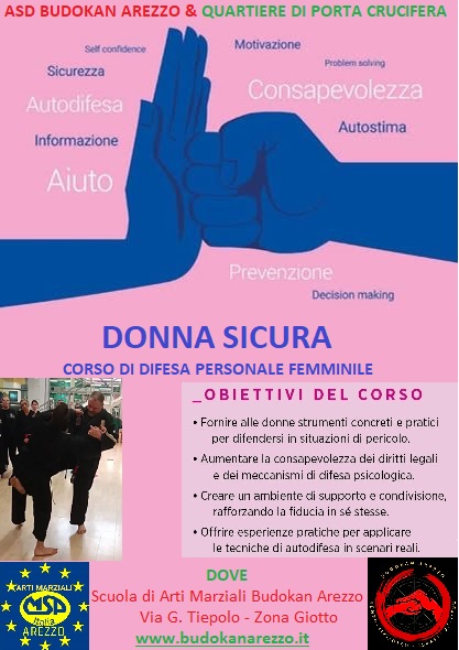 "DONNA IN SICUREZZA" CORSO DI DIFESA PERSONALE FEMMINILE REALIZZATO COL PATROCINIO ED IL CONTRIBUTO ECONOMICO DI REGIONE TOSCANA E COMUNE DI AREZZO - ASSESSORATO PARI OPPORTUNITA'